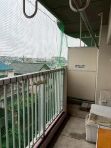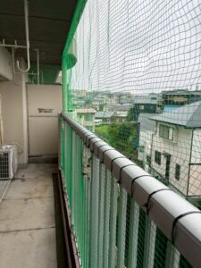 鳩が帰ってきても、二度とベランダに侵入できないように一切の隙間なく、ネットを張ってまいります。