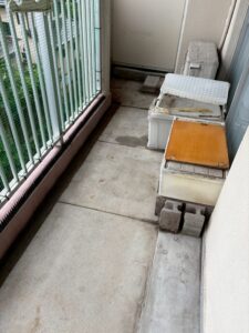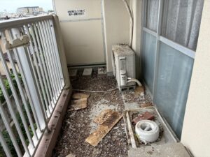 少し閲覧注意ではございますが、鳩の糞がベランダ一面に散乱しているような状況でございました。