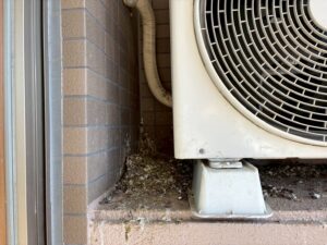 津市にお住いの方からベランダの室外機の上に鳥の巣が出来ており、糞もかなり散乱しているので駆除や対策をお願いしたいですとご連絡をいただきました。
